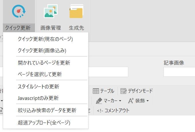 これは今更新したサイトの表示をリアルタイムで確認できるということです。シリウス2には8種類のクイック更新が用意されていて効率の良い方法を選択できます。