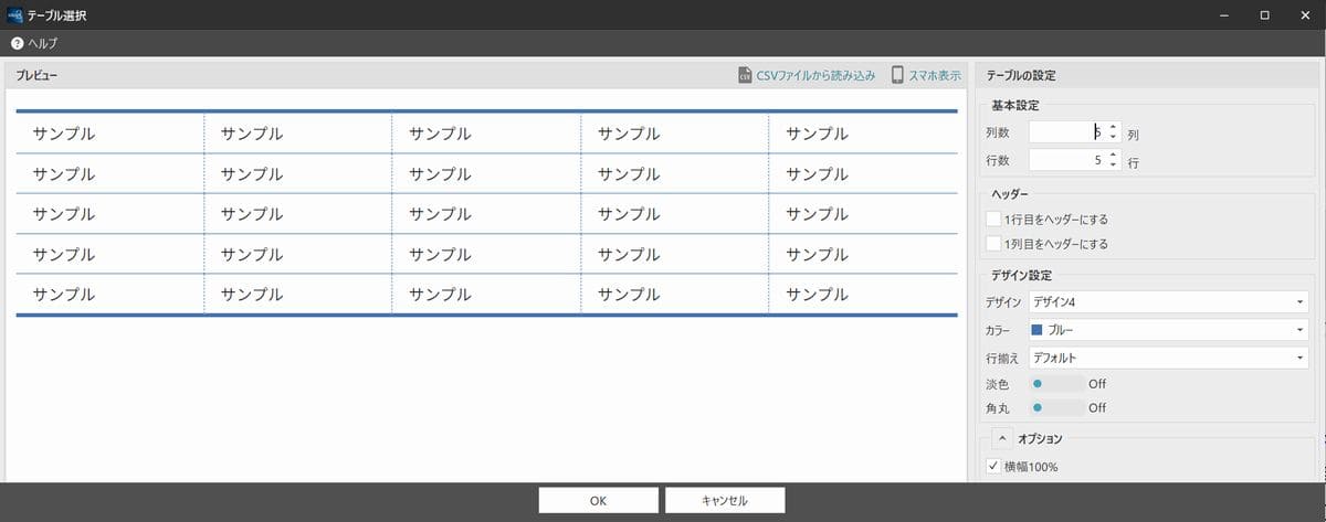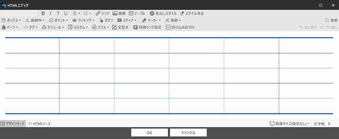 デザインモードはホームページ作成画面ではブログを編集するような感覚で操作可能で、上記のテーブル枠作成のような各編集エディター上でも機能します。ホームページの完成形を見ながら操作できると言う事です。